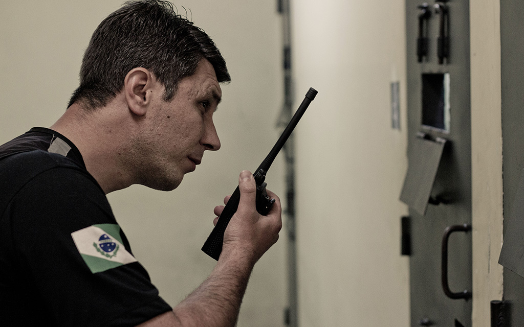 Por sete anos, Aly Muritiba trabalhou em uma prisão. Lá ele fez parte da Equipe Alfa. Após estudar cinema e dirigir alguns curtas-metragens, Muritiba, volta ao seu antigo trabalho para reencontrar seus colegas e realizar um filme. A Equipe Alfa é formada por 28 pessoas, homens e mulheres de origens e formações distintas que fazem a guarda e custódia de cerca de mil criminosos numa penitenciária Brasileira. Walkiu torna-se o chefe da equipe e espera fazer um bom trabalho. Mas percebe que suas mãos estão algemadas.